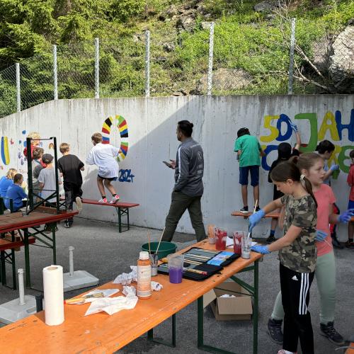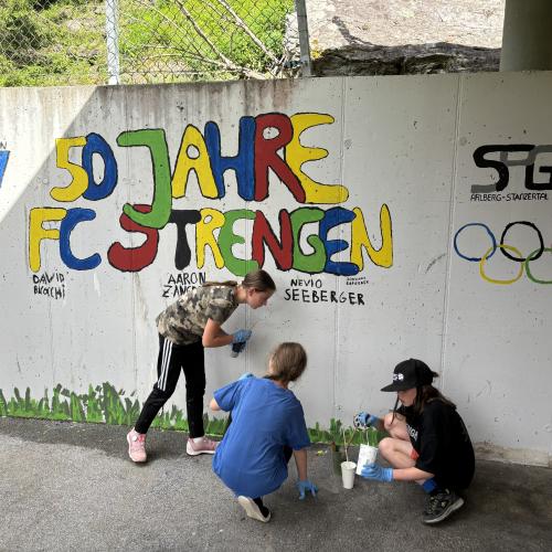 am Fußballplatz zum Malen von Rainer Pinzger 01. Juli 2024 3 2023/2024 Am 26.06.2024 wurden wir vom Fußballclub Strengen eingeladen, einige "freie Betonwände" zu gestalten. Wir nahmen die Einladung an und erledigten unsere "Malerarbeiten" sehr schön. Zu sehen im Eingangsbereich links beim Fußballplatz!Besten Dank noch für die Verpflegung!