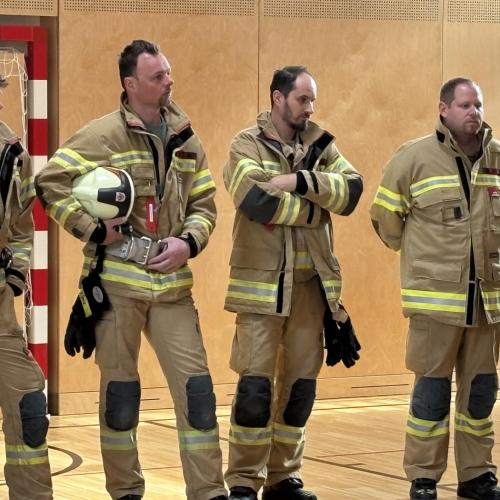 Kurz darauf ertönte der Alarm – zum Glück nur zur Übung! Die Kinder verließen gemeinsam mit ihren Lehrpersonen zügig und sicher das Schulhaus. Auf dem Sammelplatz angekommen, überprüfte die Feuerwehr die Vollständigkeit aller Klassen.