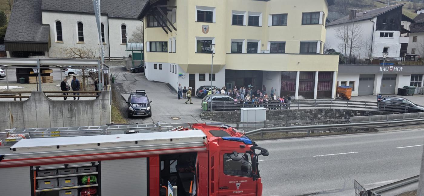 Feuerwehrübung mit Evakuierung an der Volksschule Strengen